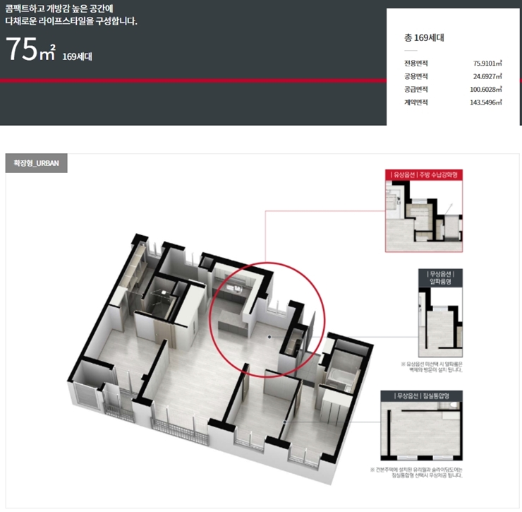 - 75 타입 - 특별공급 : 85세대, 일반분양 : 84세대