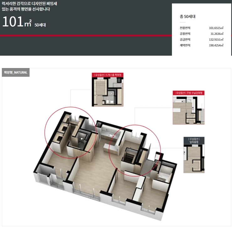 - 101 타입 - 특별공급 : 6세대, 일반분양 : 44세대