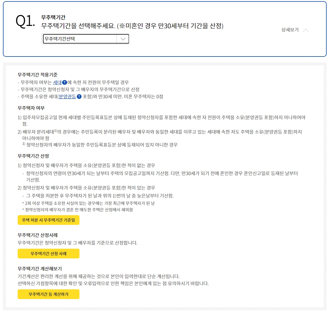 자신이 무주택자인지 아래 내용 확인하셔서 정확하게 무주택기간을 산정하시기 바랍니다.